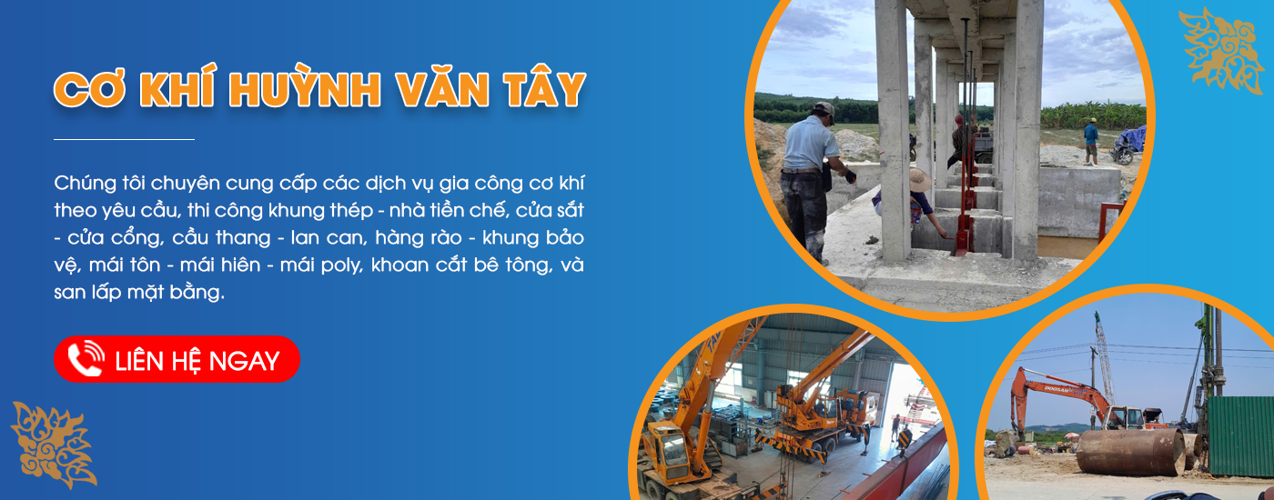 Công Ty TNHH Một Thành Viên Cơ Khí Huỳnh Văn Tây chuyên cung cấp các dịch vụ gia công cơ khí theo yêu cầu, thi công khung thép – nhà tiền chế, cửa sắt – cửa cổng, cầu thang – lan can, hàng rào – khung bảo vệ, mái tôn – mái hiên – mái poly, khoan cắt bê tông, và san lấp mặt bằng cho các công trình từ dân dụng đến nhà xưởng. Với đội ngũ chuyên nghiệp và trang thiết bị hiện đại, chúng tôi cam kết mang đến chất lượng vượt trội và sự hài lòng cho khách hàng.